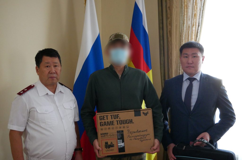 24 сентября руководитель управления Роспотребнадзора по республике Сергей Ханхареев и главный врач Центра гигиены и эпидемиологии в Бурятии Зорикто Марактаев встретились с участником СВО. Бойцу передан ноутбук для обучения управлению беспилотными летательными аппаратами.