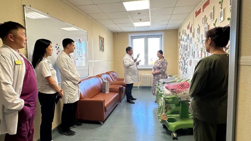 Крох и счастливых родителей поздравил главный врач РПЦ Зорикто Даржаев – он вручил семье памятные подарки.