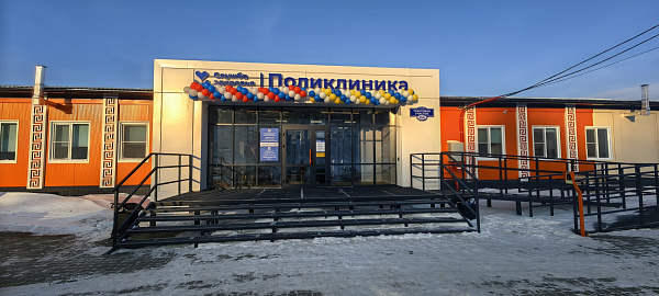 В селе Хоринск в Бурятии прошло открытие новой поликлиники Хоринской центральной районной больницы. Здание выполнено из модульных конструкций, что позволило возвести его в короткие сроки.