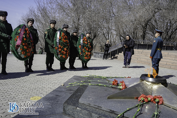 10 апреля на Мемориале Победы в Улан-Удэ состоялась церемония возложения цветов в дань уважения всех героев - защитников Родины.
