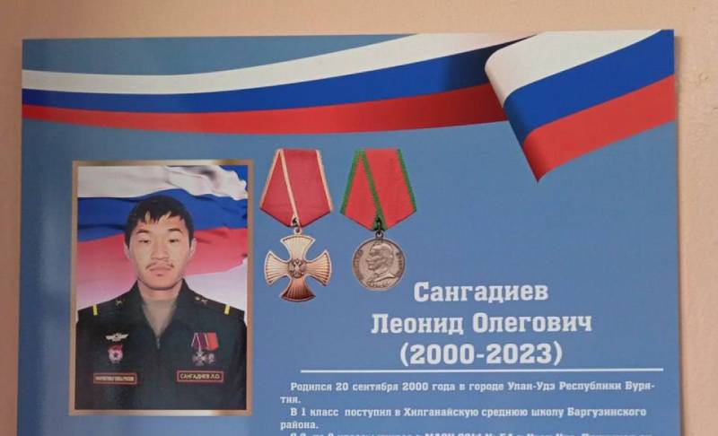 В улан-удэнской школе №54 открыли стенд в память о выпускнике Леониде Сангадиеве. Он погиб в ходе спецоперации.