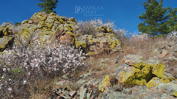Середина мая — самое привлекательное время для посещения Тугнуйских столбов или Меркитской крепости — скального образования на границе Мухоршибирского, Тарбагатайского и Селенгинского районов Бурятии. В этот период здесь пышно цветёт сибирский абрикос.