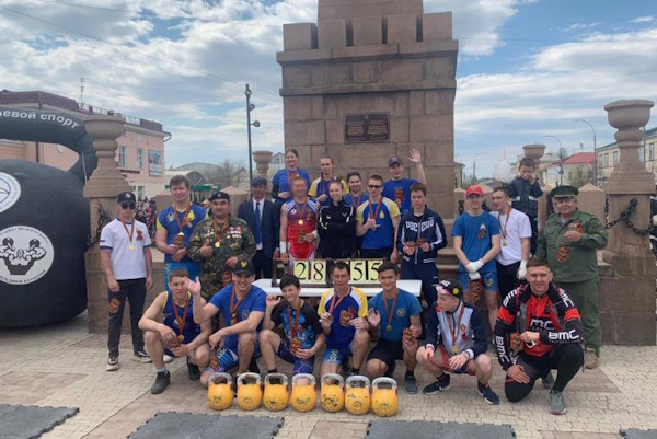В Улан-Удэ на площади Революции прошла всероссийская акция «Рекорд Победы», организованная Федерацией гиревого спорта Бурятии.