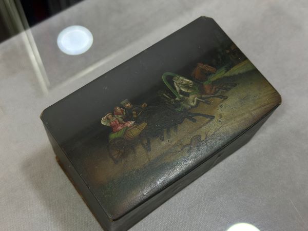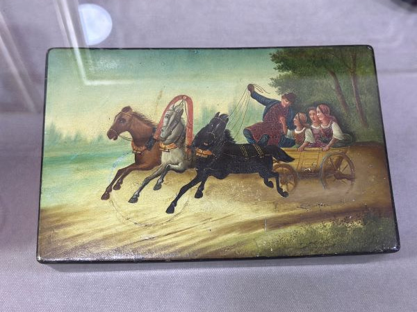 Особое место на выставке отведено сюжетным платкам и шкатулкам. На них размещали портреты известных государственных деятелей, инструкции по уходу за ранеными и оружием, карты, быт XIX в. Также на выставке представлен старинный орган и документ начала XIX в. с подлинной подписью государя императора Александра I и военного министра того времени – героя Отечественной воины 1812 года Бapклaя-дe-Toли.