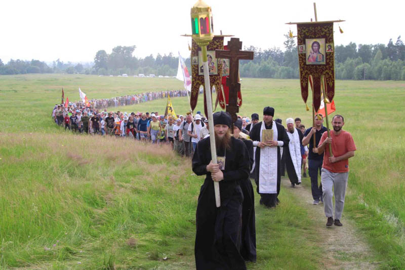 Литургия служилась в выносном алтаре. Из четырёх чаш причастилось более 500 человек. После службы верующим предложили подкрепиться, и крестоходцы под звон колоколов вышли с монастырского двора, чтобы пройти 12 километров.
