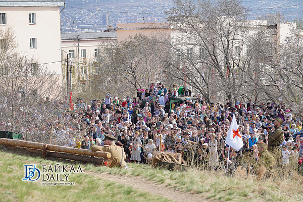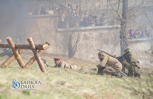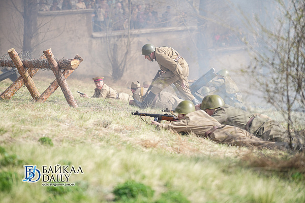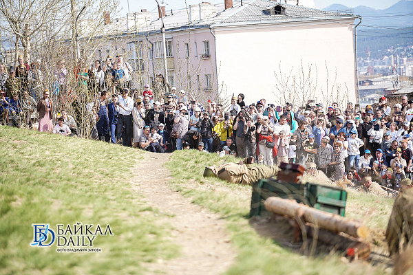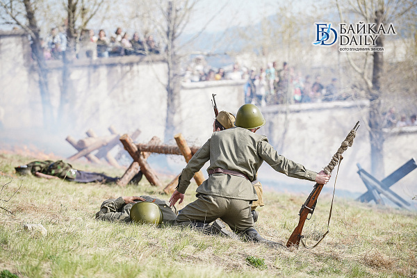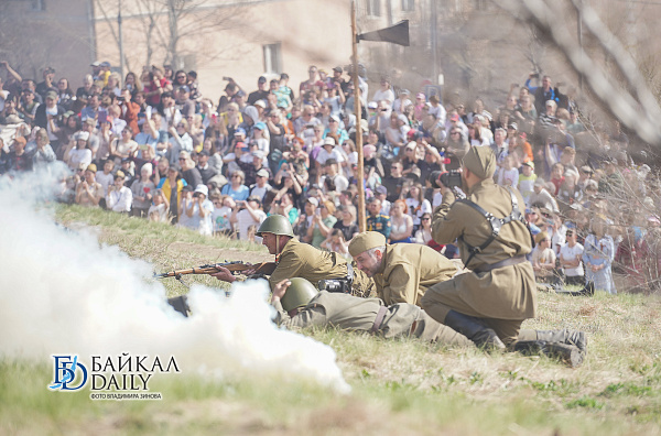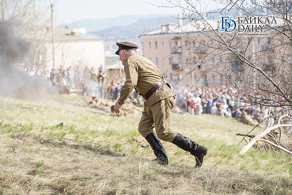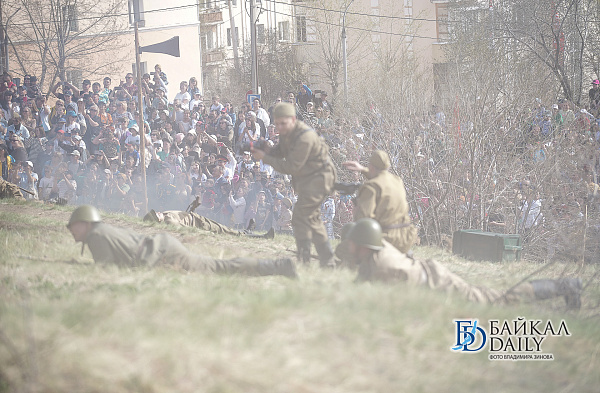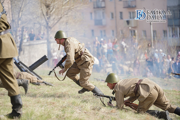 9 мая в Улан-Удэ состоялась реконструкция подвига Героя Советского Союза Сергея Орешкова. Постановка развернулась возле Городского культурного центра (бывший ДК ЛВРЗ).