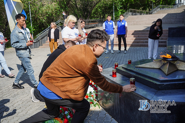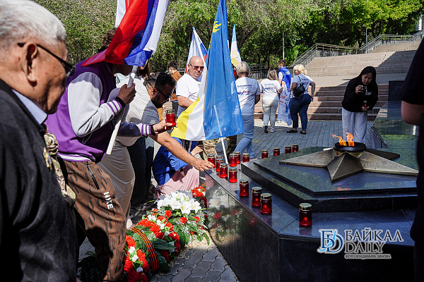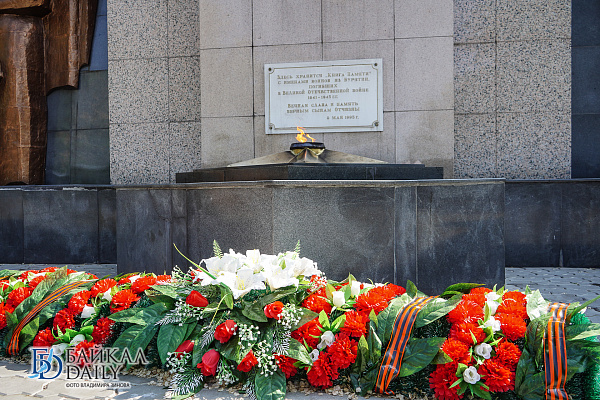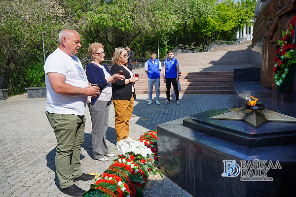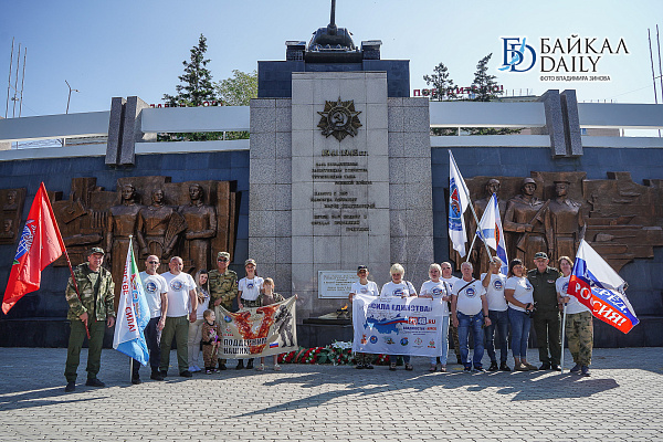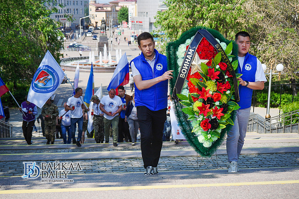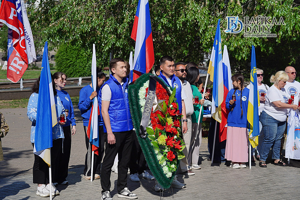 В столице Бурятии прошёл торжественный митинг на Мемориале Победы с участниками автопробега, а также общественными и молодёжными организациями.