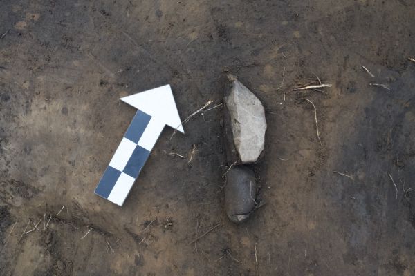 Ниже оказался очередной сюрприз – комплексы, которые никак нельзя было связать с ранненеолитическим очагом. Обнаруженные там находки были представлены только изделиями из камня и костными остатками фауны. Они концентрировались у неглубоких ям с гальками и отдельностями породы.
