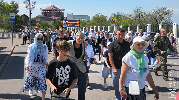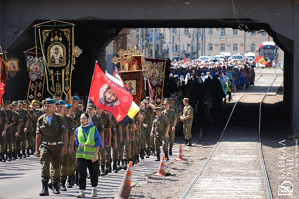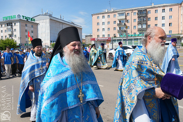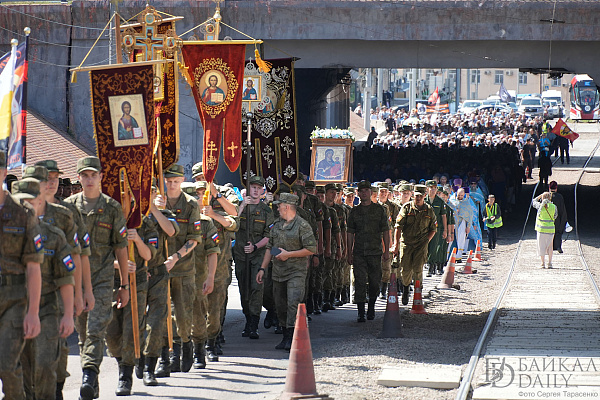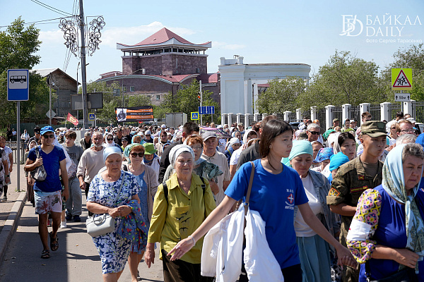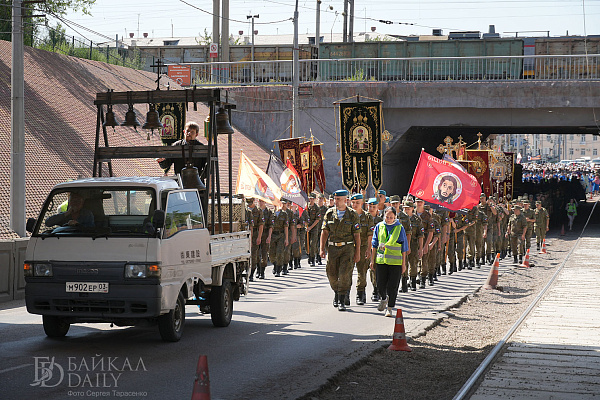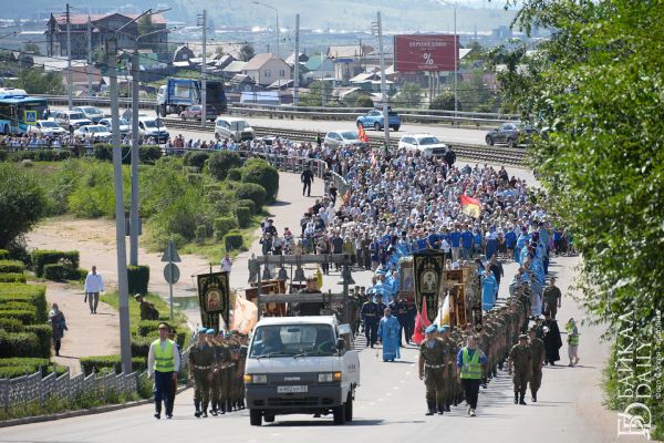Возглавляли шествие митрополит Улан-Удэнский и Бурятский Иосиф, епископ Северобайкальский и Сосновоозерский Николай, епископ Братский и Усть-Илимский Константин, священнослужители Улан-Удэнской и Бурятской епархии. В строю шли монахини Сретенского женского монастыря, члены епархиальных молодежных клубов, военнослужащие, прихожане, в том числе паломники, приехавших из разных районов Бурятии.
