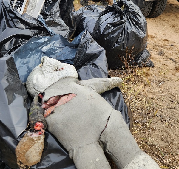 - Встретили не кучу мусора, а сюрреалистичный музей забытого времени, – рассказал Чингис Болотов. – Посреди леса нас ждали большой плюшевый медведь с распоротым животом, значок октябрёнка и обгоревшие страницы женского романа. А на фоне – шприцы, разбитые пластиковые окна, ненужная одежда, сношенные ботинки и тонны другого бытового мусора.