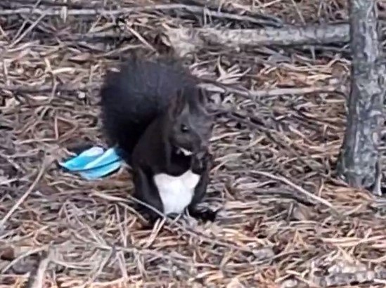 Время от времени специалисты наблюдают лесных гостей. В этот раз в поисках чего-то вкусненького к специалистам пришла пушистая белочка, которую на камеру запечатлел начальник мехлесхоза.