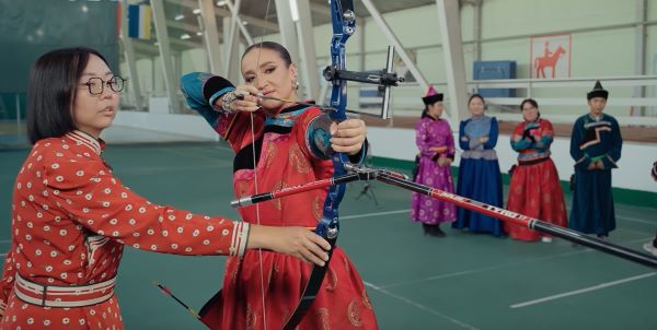 Отметим, что стреляла из лука популярная телеведущая в традиционном бурятском костюме.