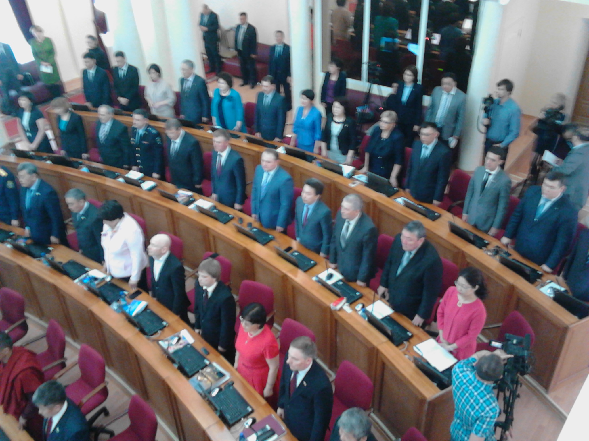 10.03 – ВЗ - Все вдумчиво и стоя слушают гимн Бурятии. В лицах решимость отдать жизнь за родную Бурятию.