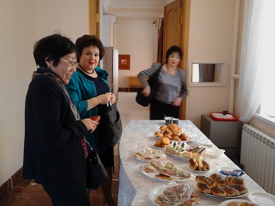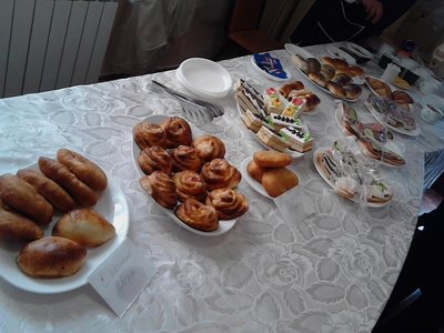13.33 – «БD» - В импровизированном кафе можно отведать бутерброды, щедро уложенные колбасой или ветчиной с прослойкой из огурцов по 30 рублей, пирожки с курагой, печенью и капустой по 14-17 рублей, сладкие булочки по 15 рублей, кофе по 20. Цены «перекуса» в Хурале сегодня вполне по карману и школьнику.