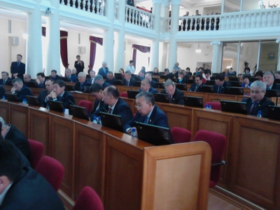 10.20 - «БD» - Зал заседаний полон. Весьма многочисленнен и второй этаж, где сидят не депутаты, а присутствующие - журналисты, представители партий, работники аппарата Хурала. Впрочем, как показывает опыт, уже к вечеру ряды депутатов вполне могут поредеть. Так всегда бывает на ежегодных посланиях главы, пропускать которое депутаты не должны, однако до конца сессии сидеть их уже ничто не заставляет.