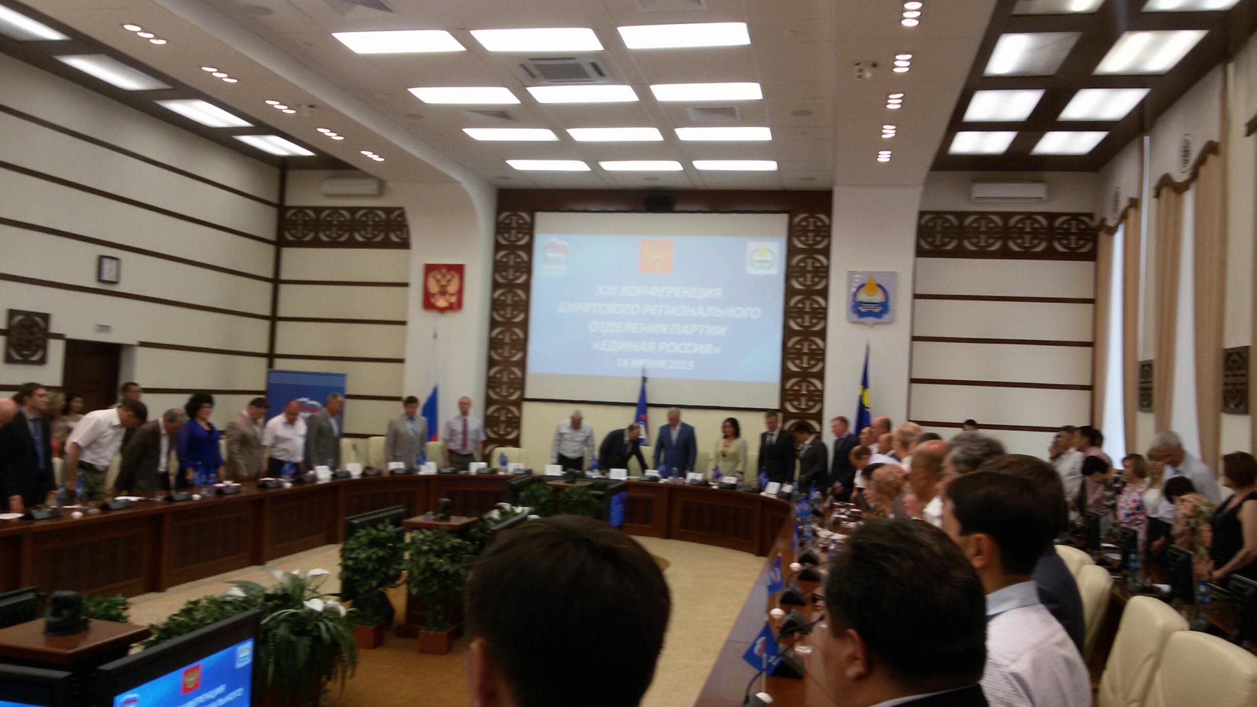 18.51 - БD - Спустя 1,5 часа после начала с большим опозданием подъехало окинское отделение партии. Таким образом, со 117 делегатов их количество выросло до 121-го.