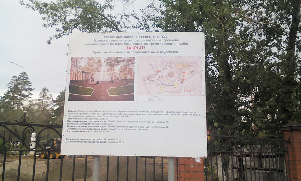 Власти Улан-Удэ обещают в срок завершить реконструкцию парка имени Орешкова и парка Юбилейный. В парковой зоне полным ходом идут комплексные масштабные мероприятия по преображению. Появятся места для досуга, прогулок и отдыха