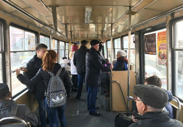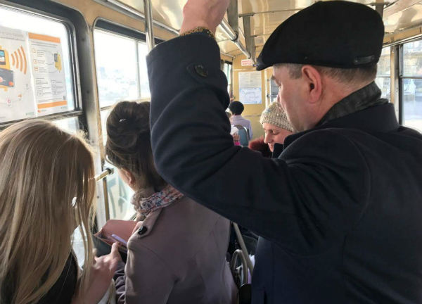 По словам автора фото, мэр сел на остановке «Октябрь» и доехал на трамвае до площади Советов.