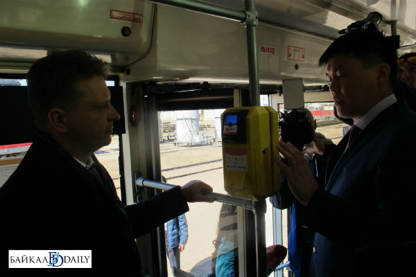 В ходе обхода гости предприятия зашли в один из трамваев, оснащённый валидатором. Опробовать систему вызвался и.о.главы. Он поднес карточку к валидатору, но ответного чека устройство не выдало. Алексей Цыденов сказал, что «будет ждать смс-отчета о списании».