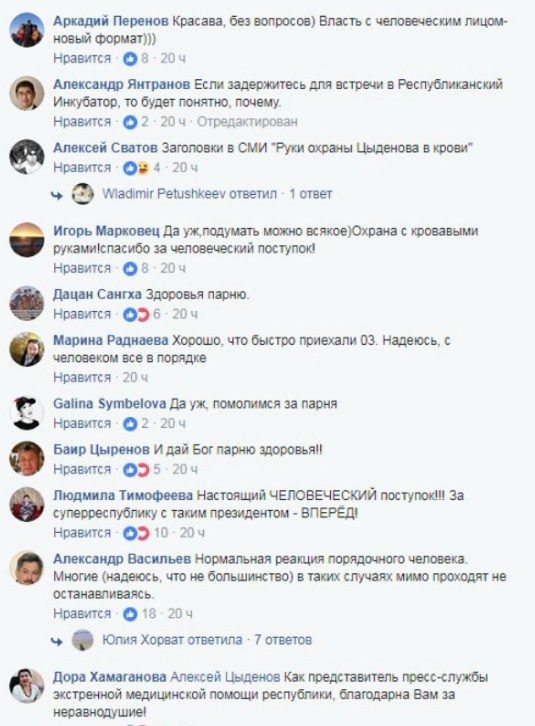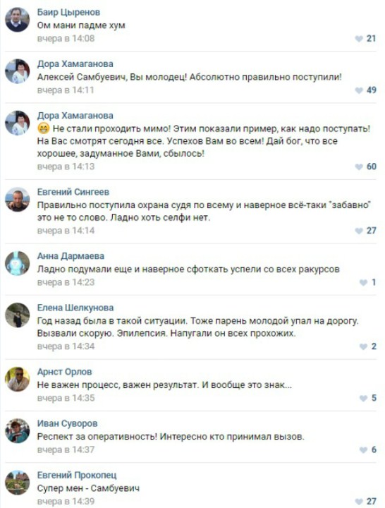 - Здоровья молодому человеку. Алексей Самбуевич - молодец. Некоторые в таких случаях, вообще мимо проходят и делают вид, что ничего не видят.