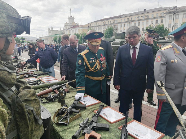 Глава республики Алексей Цыденов посетил выставку, оценил работу мобильного пункта, осуществляющего консультационную помощь желающим пройти контактную службу. Алексей Цыденов отметил высокий уровень подготовки военнослужащих. В мобильном пункте все желающие могут бесплатно пройти тестирование и определить степень своей готовности к службе в частях 36 общевойсковой армии. На площади также развернута полевая кухня, спортивная и игровая зоны с конкурсными программами.