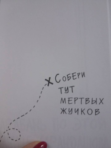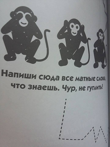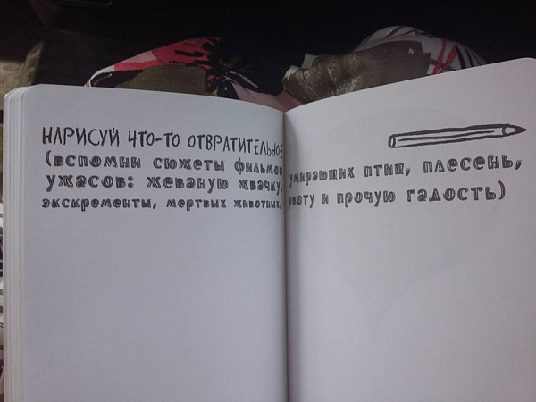 В частности, в блокноте для творчества предлагаются такие варианты действий как: «Напиши фигню немедленно», «Напиши сюда все матные слова, что знаешь. Чур, не гуглить», «Сделай этим блокнотом что-то ужасное и разрушительное», «Собери тут мёртвых жучков».