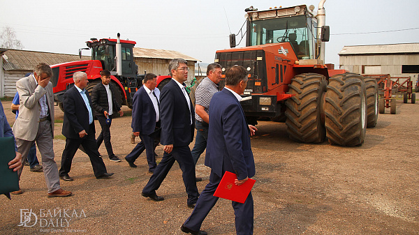Далее глава Бурятии осмотрел поля зерновых культур, КФХ фермера Сергея Заиграева в селе Большой Куналей, где за два последних года на 22 млн господдержки в приобретены посевной комплекс «Кузбасс» и другая техника. И посетил построенную на грант в 8,9 млн рублей по региональной программе «Развитие АПК и сельских территорий Республики Бурятия» семейную молочную ферму КФХ Дмитрия Дампилова.
