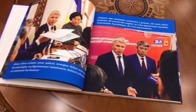 В Улан-Удэ министру спорта России Павлу Колобкову преподнесли необычный подарок – книгу-фотоальбом, показывающую весь маршрут его передвижений в столице Бурятии. Рядом со снимками разместили и высказывания чиновника. Издание называется «Один день из жизни министра». Его специально сделали ко дню рождения главы минспорта, который отмечался 22 сентября. Свой день рождения Павел Колобков провёл в командировке в Бурятии.