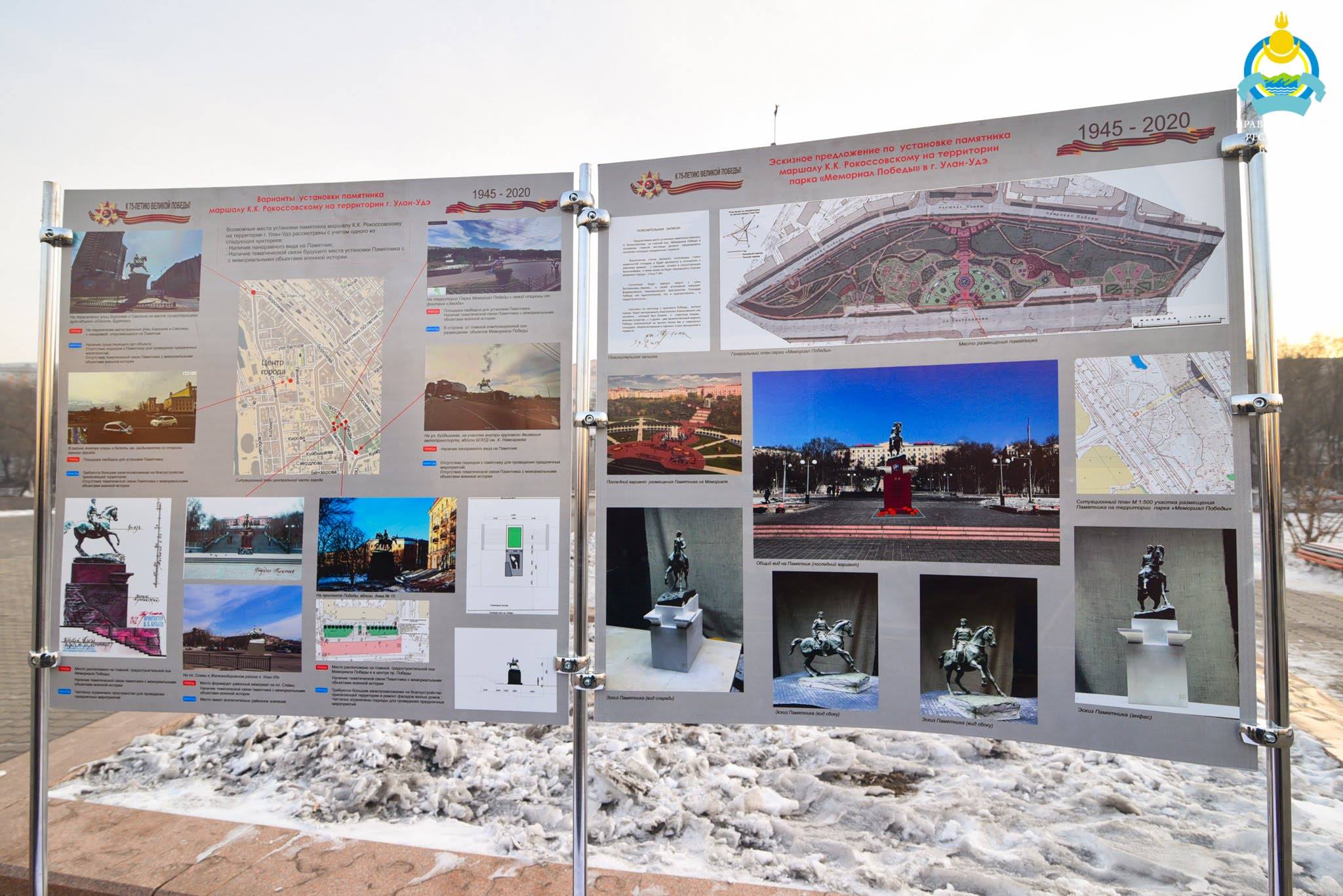 На мемориале Победы в Улан-Удэ были представлены эскиз и варианты места установки памятника выдающемуся советскому маршалу Константину Константиновичу Рокоссовскому. В мероприятии приняли участие глава Бурятии Алексей Цыденов, и.о. руководителя администрации Улан-Удэ Игорь Шутенков, представители Российского военно-исторического общества и др.