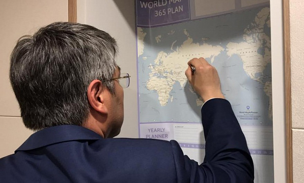 Глава Бурятии Алексей Цыденов, ожидая интервью в студии корейского телеканала SBS News, внёс изменения в висящую на стене географическую карту.