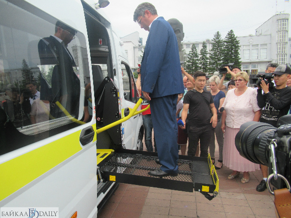 Приобретённые машины отвечают всем требованиям безопасности. Также Алексей Цыденов отметил, что при покупки основным критерием было наличие подъёмника для маломобильных людей. Глава Бурятии проверил работу подъёмника на себе.