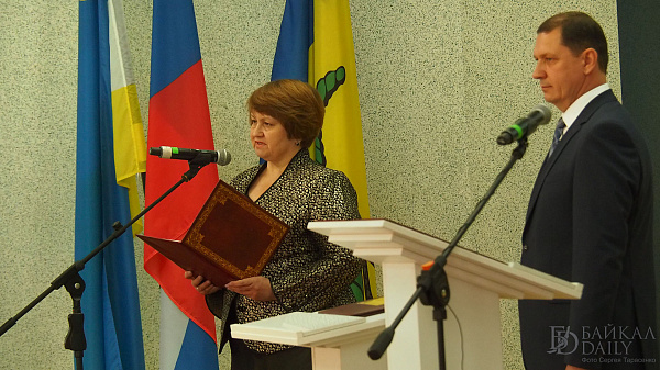 После него на сцену вышла председатель Избирательной комиссии Улан-Удэ Марина Андронова. Из её рук Игорь Шутенков получил удостоверения мэра,, после чего зачитал клятву.