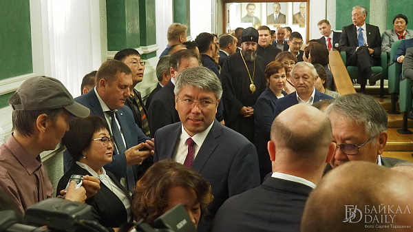 За пять минут до начала инаугурации в зал вошёл глава Бурятии Алексей Цыденов. Он занял место в первом ряду, рядом с председателем Народного Хурала Владимиром Павловым и главным федеральным инспектором по Бурятии Сергеем Ромахиным.
