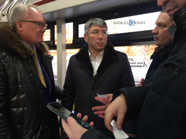 Затем Алексей Цыденов, Игорь Шутенков и Чимит Бальжинимаев проехались вместе с журналистами на новом трамвае до остановки «Советская». У главы даже нашлась мелочь на оплату проезда.