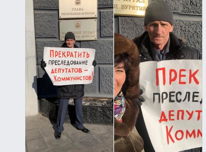 Сегодня на крыльце Народного Хурала Бурятии состоялся одиночный пикет. Плакат «Прекратить преследование депутатов-коммунистов» развернул депутат Виктор Мальцев, также член фракции КПРФ.