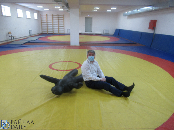 Посреди помещения лежал тренировочный манекен. На нём Алексей Цыденов продемонстрировал всем собравшимся свои борцовские навыки – он кинул его на прогиб.