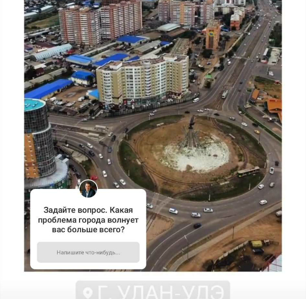 Мэр Улан-Удэ Игорь Шутенков решил через свою страницу в Instagram спросить у горожан, какая проблема в городе волнует их больше всего. Написать нужно в небольшое окошечко, прикреплённое к опросу, которое опубликовано в историях.