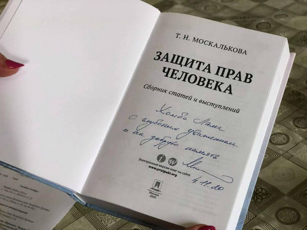 Судя по снимкам, Хамбо Лама устроил Татьяне Москальковой небольшое чаепитие. Гостья, в свою очередь, сделала подарок – книгу «Защита прав человека». Этот сборник статей и выступление подготовила сама уполномоченный по правам человека. «Хамбо Ламе с глубоким уважением и на долгую память», - подписала Москалькова подаренную книгу.