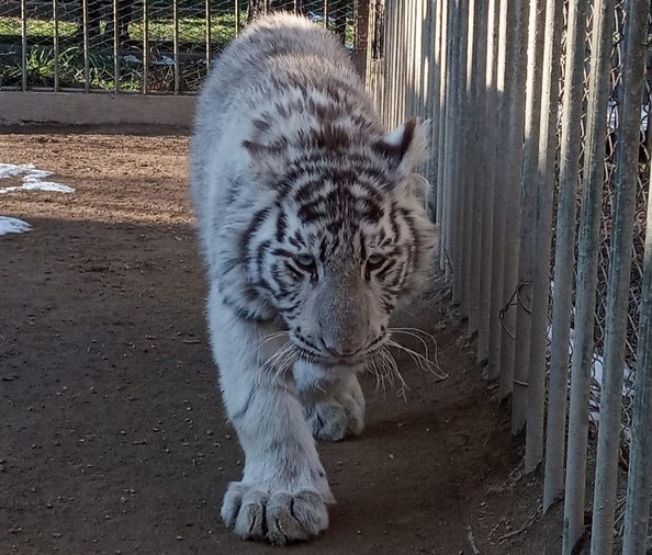 - Посмотрела как адаптируется наша маленькая юная тигрица белого цвета. Тигрицу мы купили у частного зоопарка весной, когда он попал в сложную финансовую ситуацию. Она родилась у них недавно, и назвали ее Уланой в честь нашего города, - поделилась на своей странице Соелма Дагаева.
