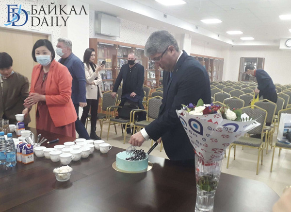 Также Алексей Цыденов после мероприятия разрезал праздничный тор и пообщался с журналистами. Представители СМИ спели на бурятском языке в честь его дня рождения.