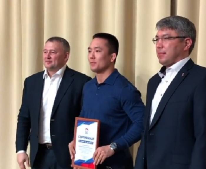 На приёме были вручены денежные сертификаты призёрам чемпионата: Балдану Цыжипову и Алдару Бальжинимаеву сертификаты на 100 тысяч, Евгению Жербаеву – на 200 тысяч. Глава Бурятии Алексей Цыденов пояснил, что денежный подарок был вручен Евгению как за первое место, поскольку он завоевал «серебро с золотым отливом».