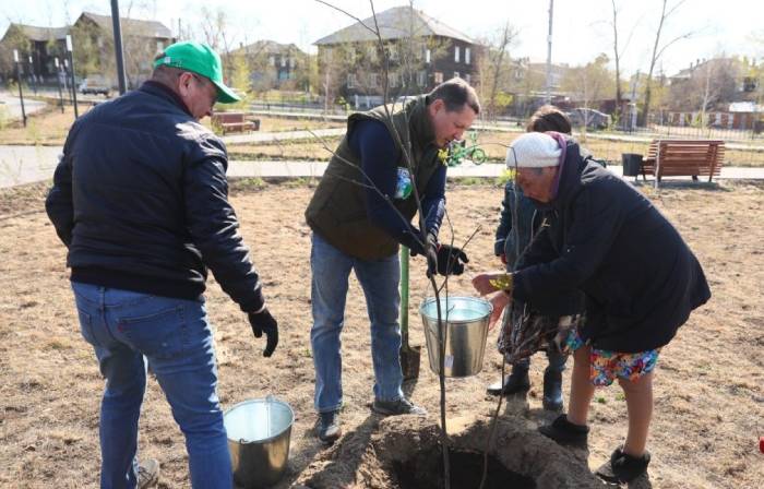 Мэр Улан-Удэ вместе с горожанами посадил саженцы рябины и яблони сибирской в сквере на улице Ткацкая.