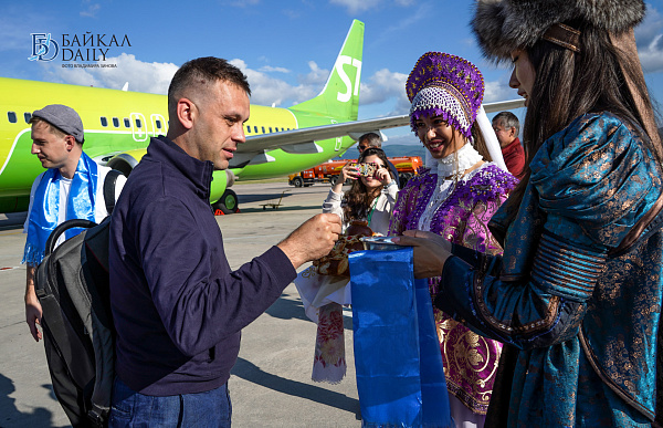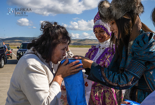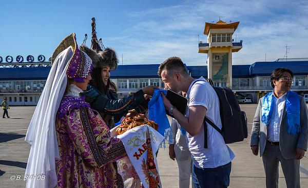 Сегодня утром первых прибывших депутатов Госдумы встретили в аэропорту «Байкал». Их встречали как почётных гостей – прямо у трапа самолёта вручали хлеб-соль, а также подносили белую пищу. Председатель комитета Госдумы по молодёжной политике Артём Метелев и заместитель председателя комитета Михаил Киселёв получили в знак уважения синие хадаки.