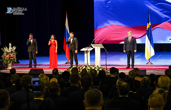 Конституционная процедура принесения присяги на должность главы Бурятии состоялась. После чего зазвучал гимн России в исполнении артистов оперного театра.