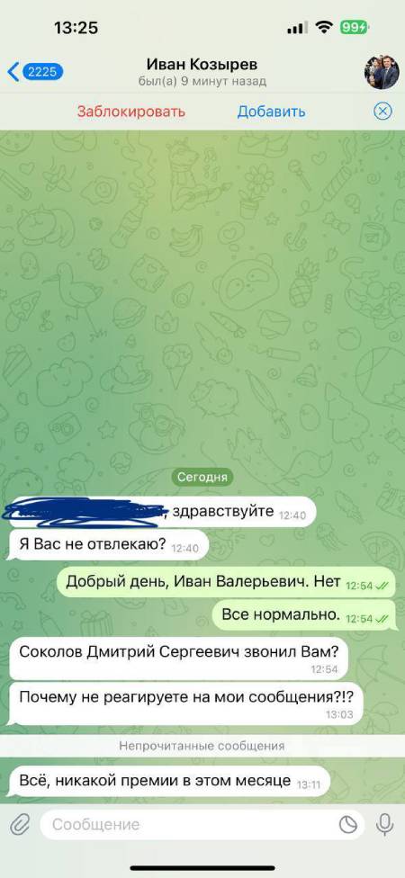 На своей странице настоящий глава минспорта опубликовал скриншот сообщений, которые мошенники рассылают его подчинённым. Когда же один из сотрудников понял, что ему пишет фальшивый министр и перестал отвечать, преступник начал угрожать. «Всё, никакой премии в этом месяце», - написал он.