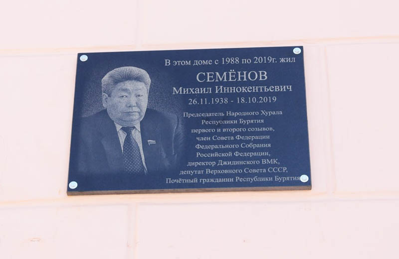 Мемориальную доску памяти Михаила Иннокентьевича Семёнова в связи с 85-летием со дня рождения торжественно открыли 27 ноября в Улан-Удэ на проспекте Победы, 11.