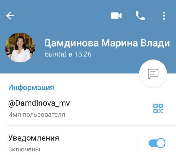 Мошенники создали фейковый личный аккаунт в Telegram руководителя Бурприроднадзора Марины Дамдиновой.