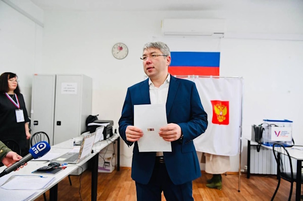 Глава Бурятии Алексей Цыденов рано утром 15 марта проголосовал на выборах президента России. Он приехал на избирательный участок ещё до его открытия. И опубликовал видео: