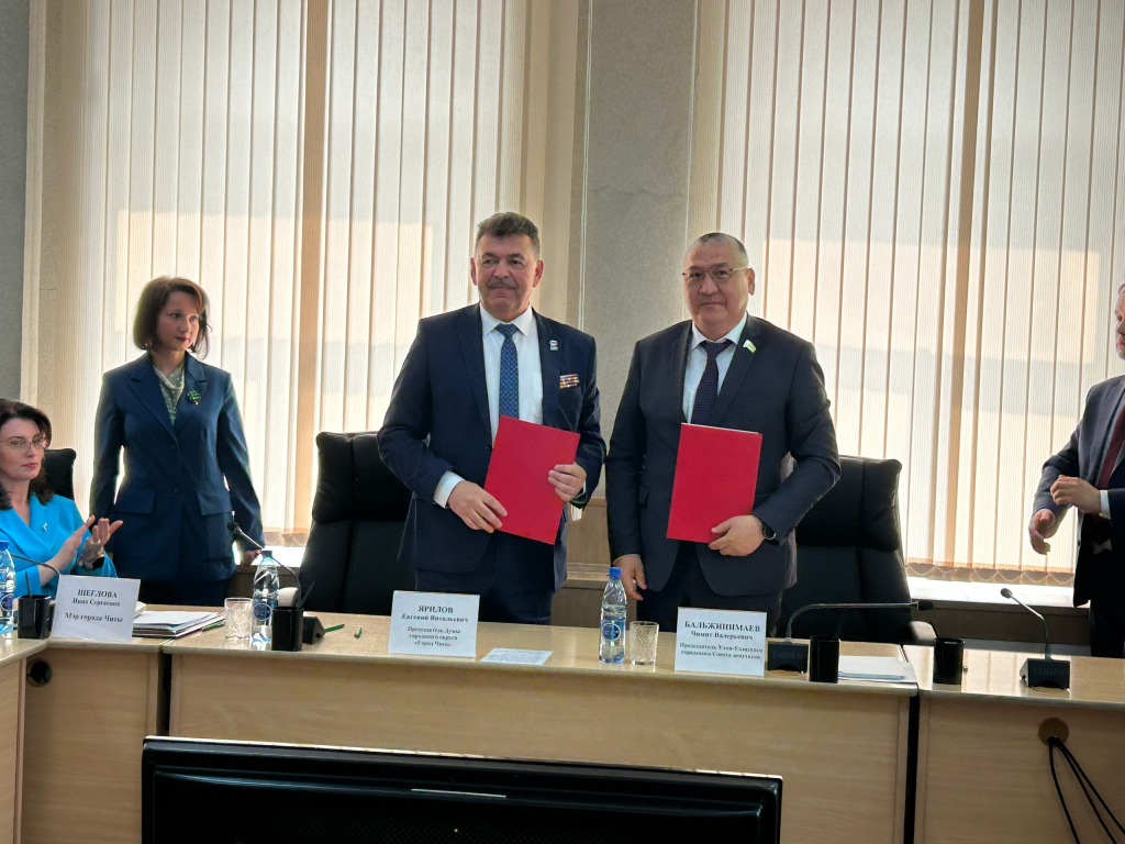 Соглашение о сотрудничестве подписано между парламентами Улан-Удэ и Читы. Подписи под документом поставили председатели представительных органов городов: Чимит Бальжинимаев и Евгений Ярилов.