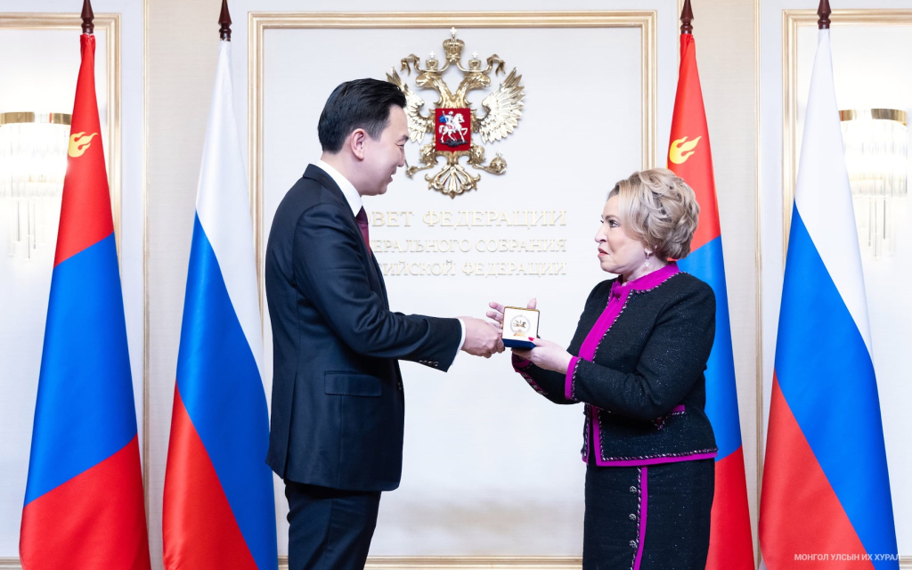 Кром этого, в ходе встречи председатель парламента Монголии вручил председателю Совета Федерации РФ Валентине Матвиенко высшую государственную награду Монголии – орден «Алтангадас» («Полярная звезда»), присвоенного по указу президента Монголии Ухнаагийна Хурэлсуха. Награда присуждена в знак признания вклада в укрепление традиционных дружественных отношений между двумя странами, развитие парламентского взаимодействия и содействие в решении вопросов погашения государственного долга Монголии перед Российской Федерацией.